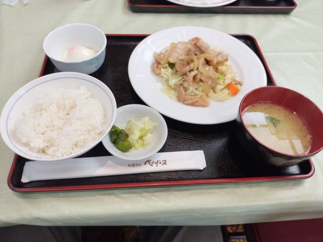 【K:日替わり定食 豚バラ肉の味噌炒め(温泉卵つき) 800円】