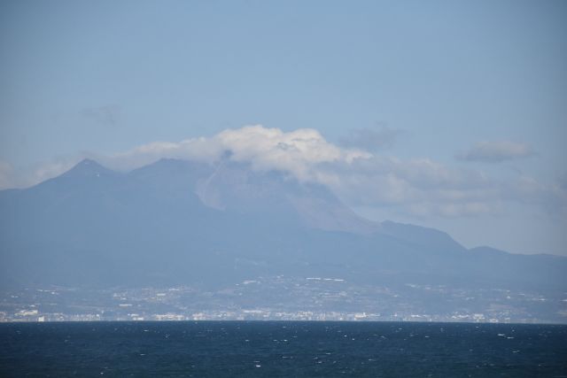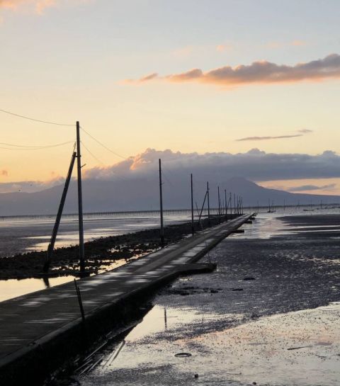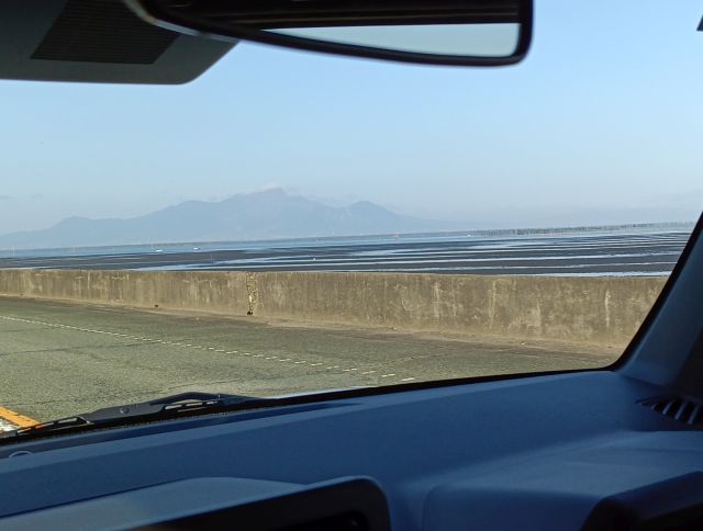 【干潮の有明海の向こうに、雲仙普賢岳】
