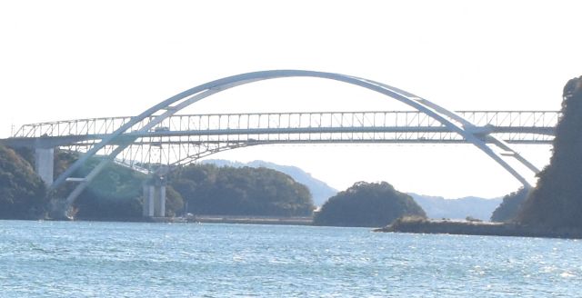 【上天草市へ渡った、天城橋と天門橋 二つの橋が合体して見えます】